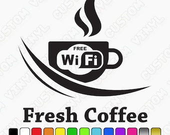 Free Wifi Cup Coffee Shop Sticker Window Vinyl Sign Sticker Etsy Finland
